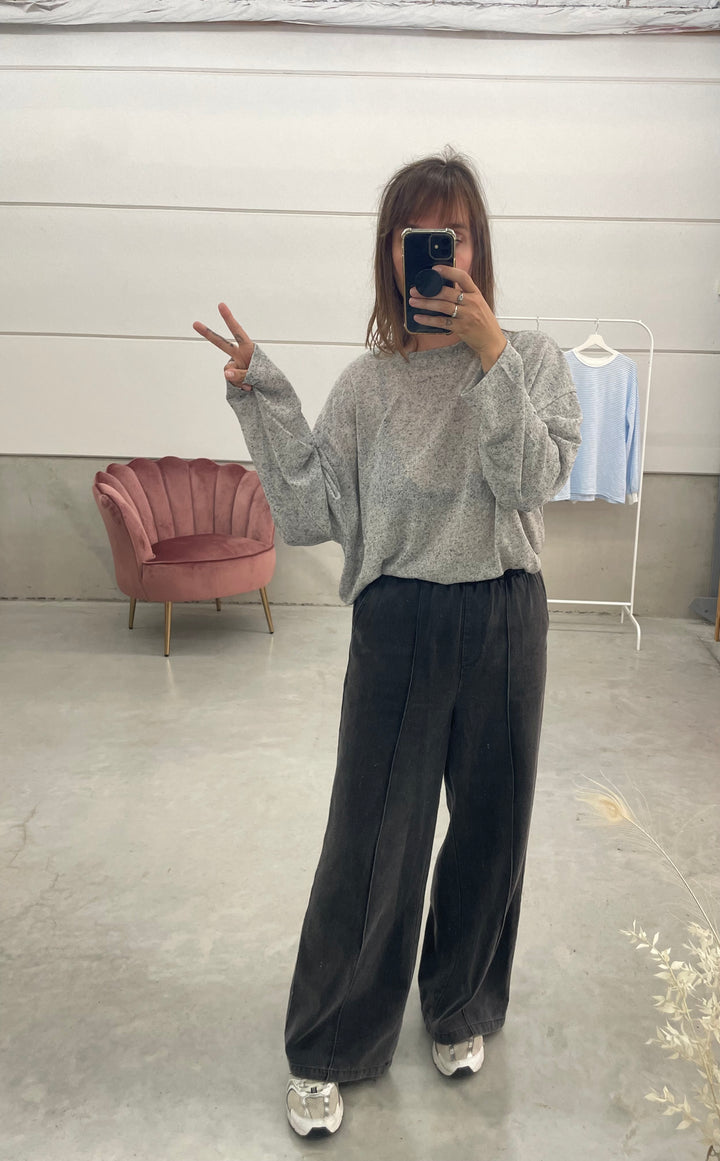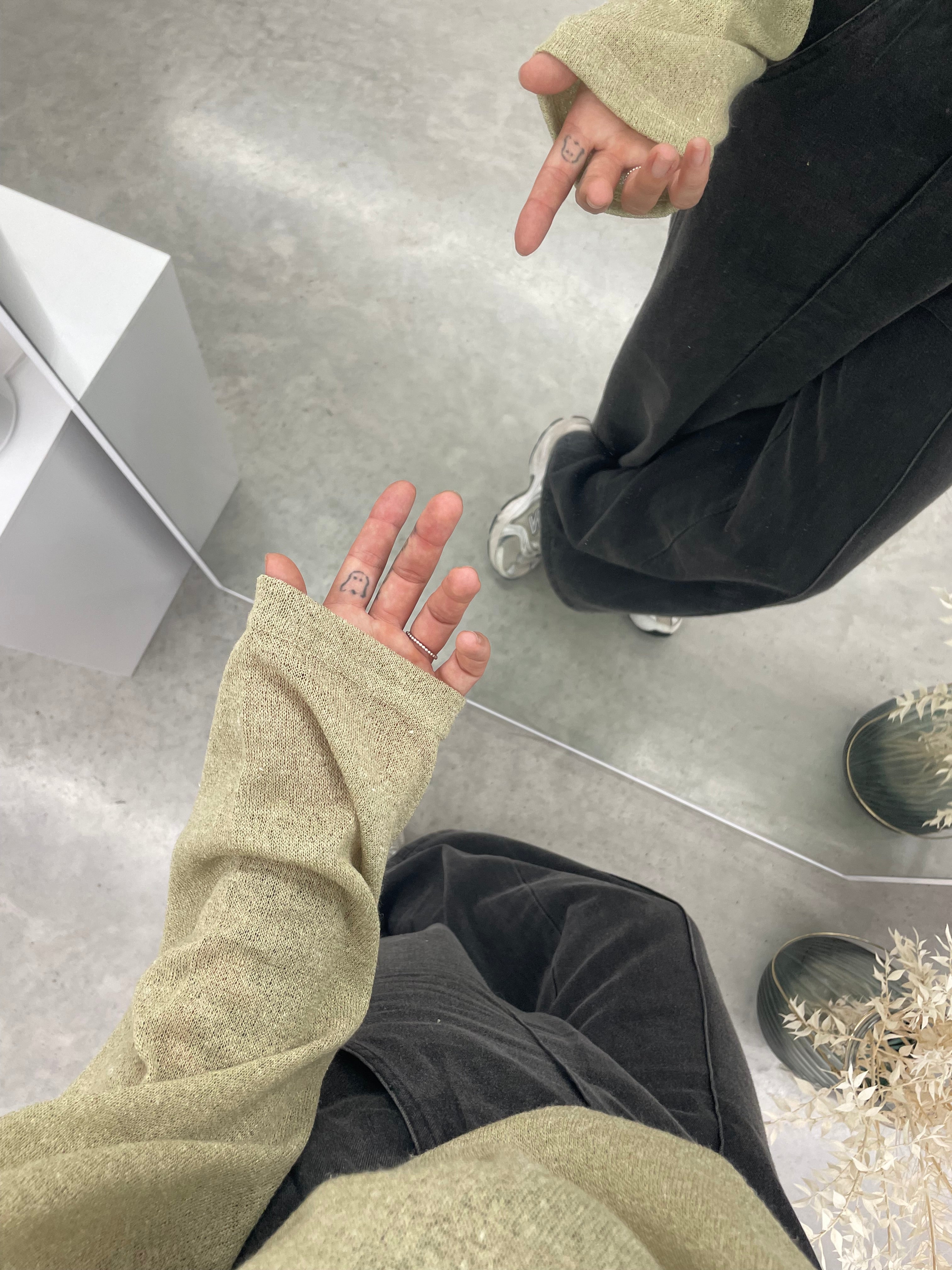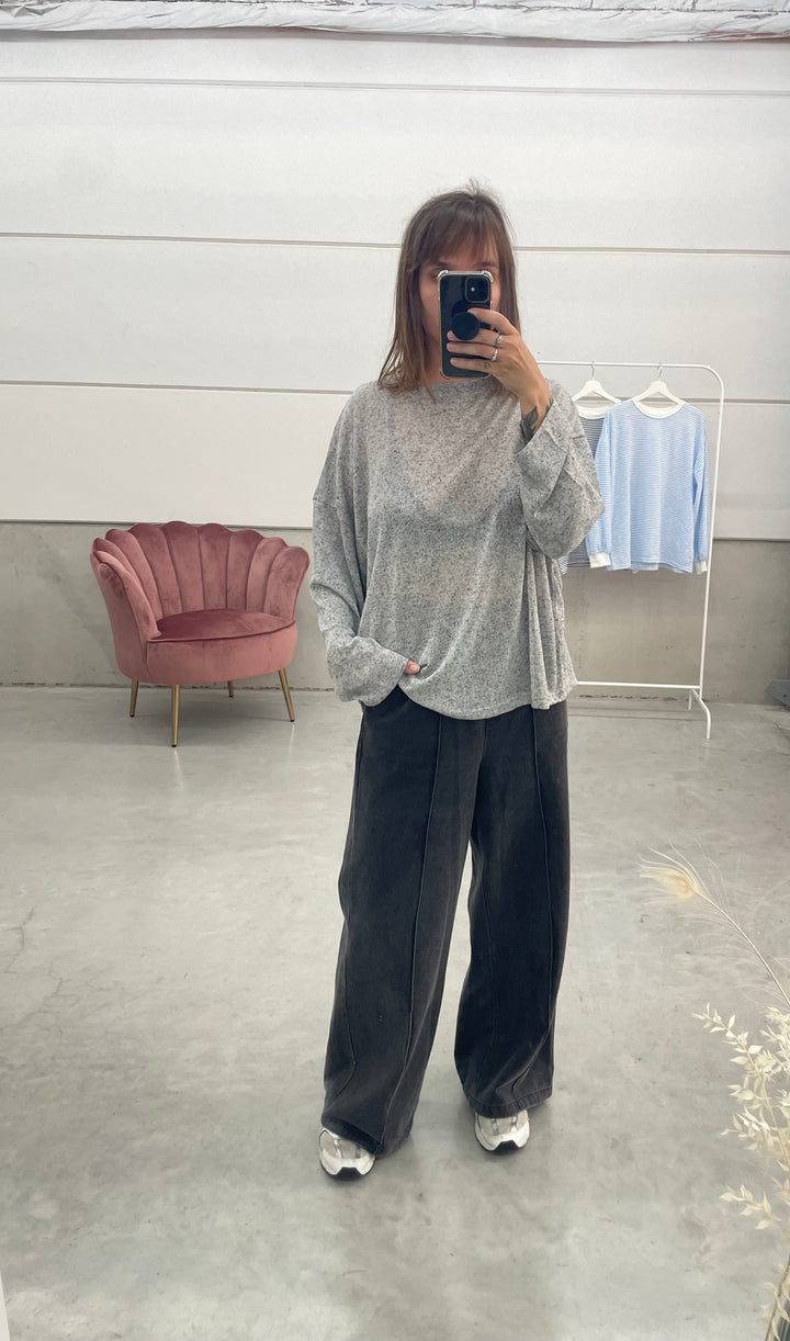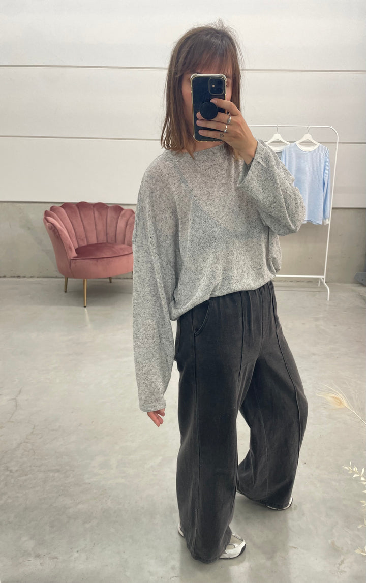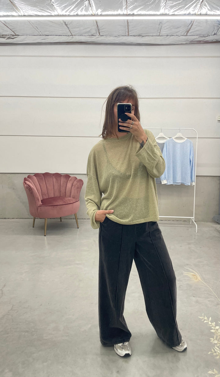 Dun luchtig truitje in lichtgrijs en lichtkaki. One size (past van 34 tot 42)