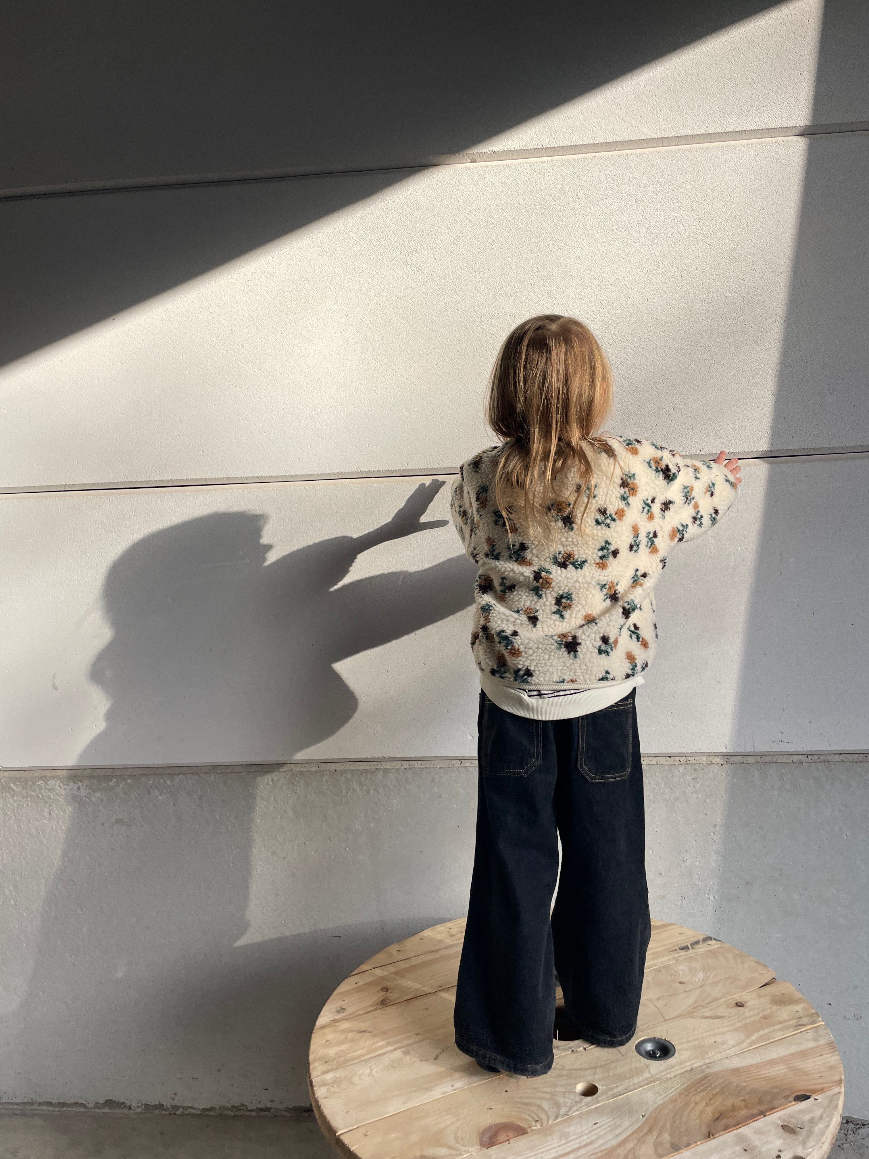 Goed om te weten: Lucie is op de foto vier jaar en draagt maatje L. Afhankelijk van kind tot kind valt het jasje iets korter