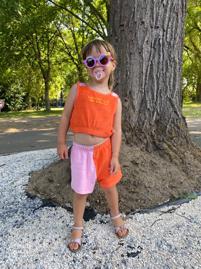 Heerlijk badstoffen top met quote "everybody loves the sunshine" ☼ Liever als set? Dan vind je hier het bijpassend shortje. Model is 6 jaar, 117cm groot en draagt maat 116. Lily is op de laatste foto bijna 3 jaar en draagt maat 104