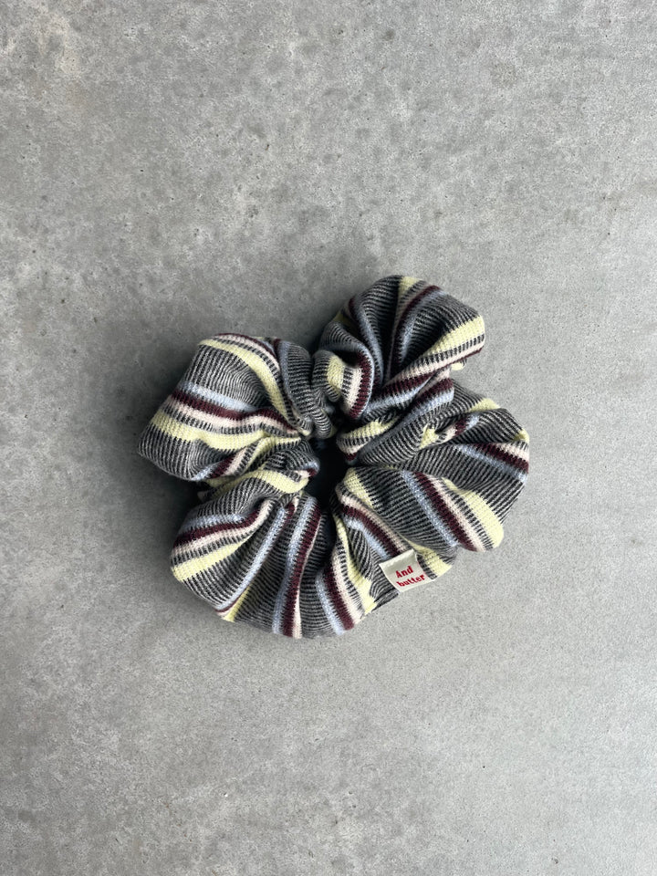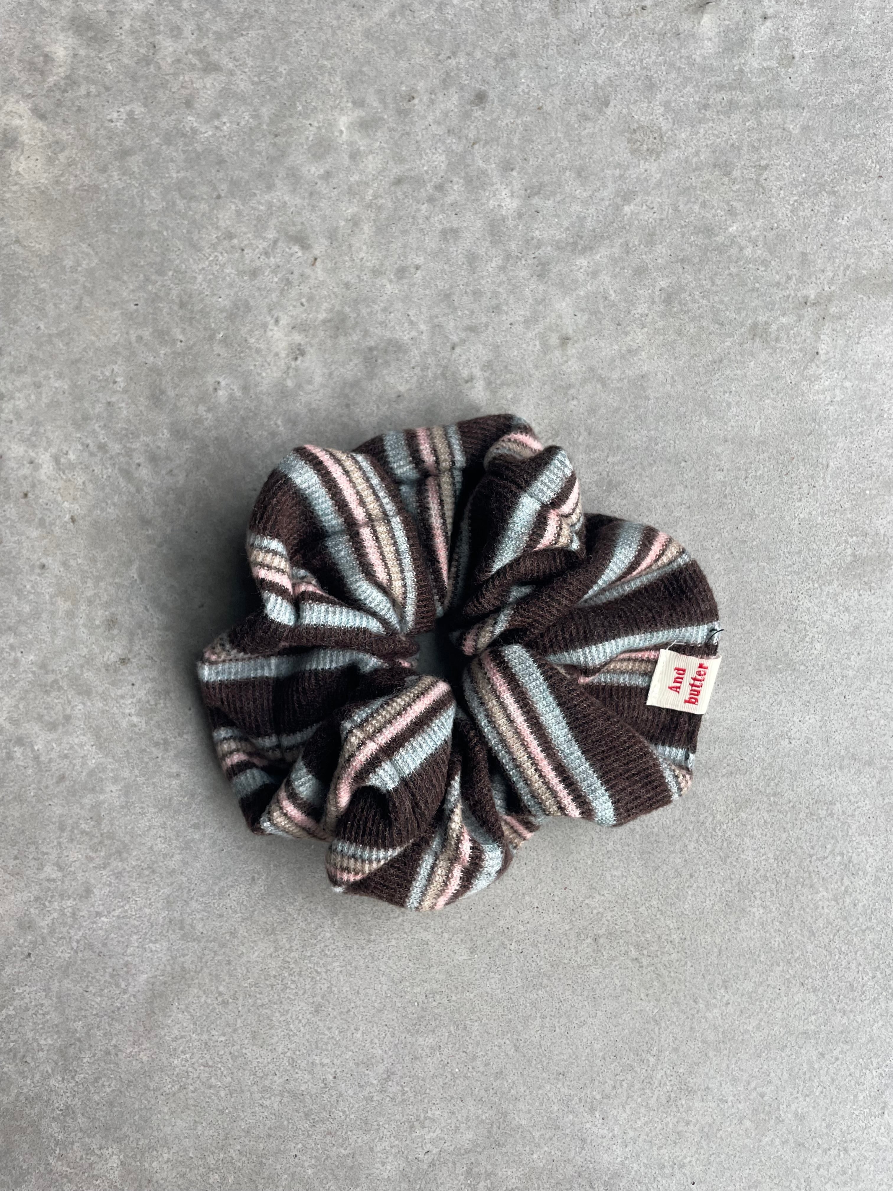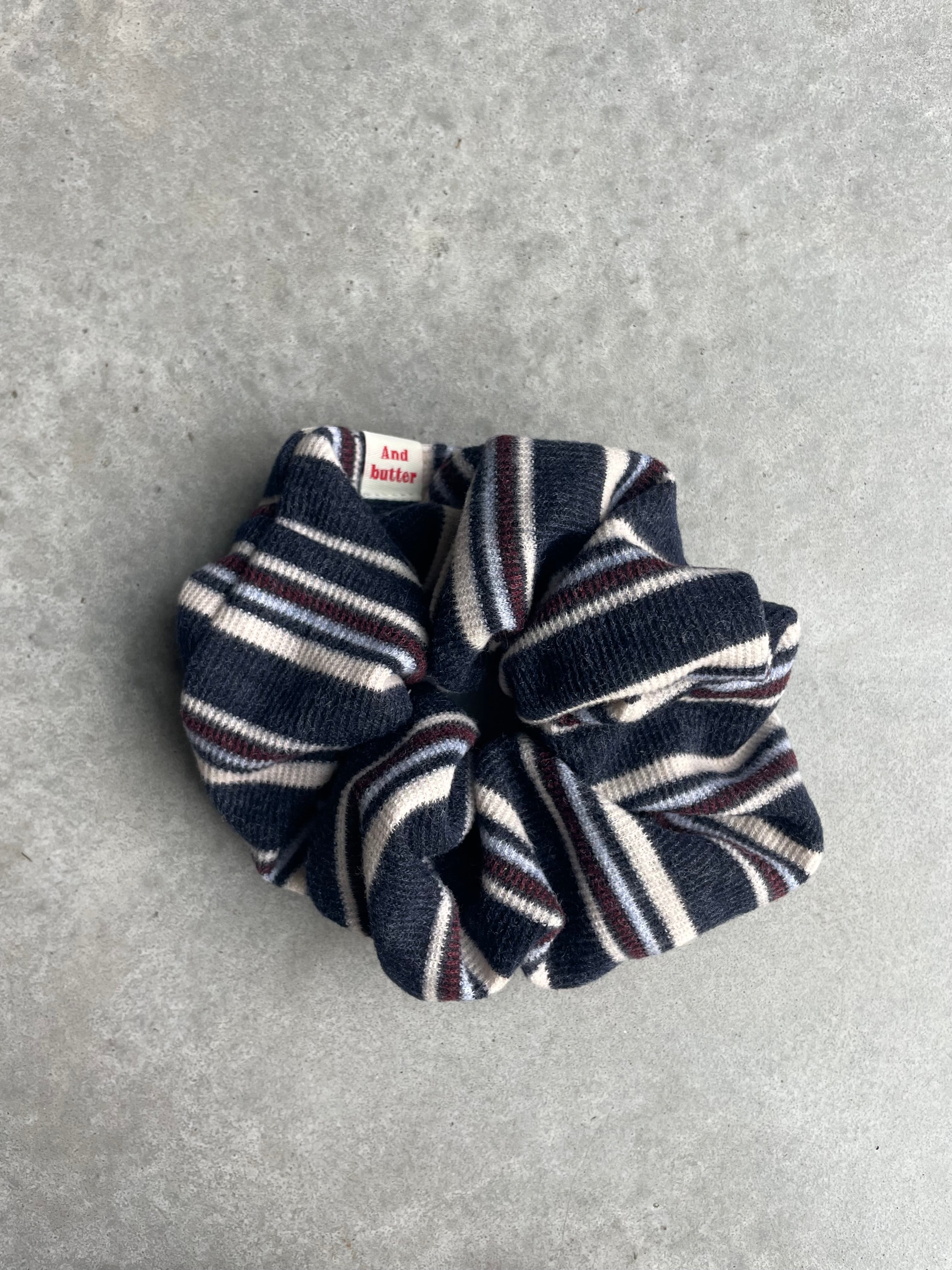 Een mooie grote gestreepte scrunchie om die prachtige haardos omhoog te steken.