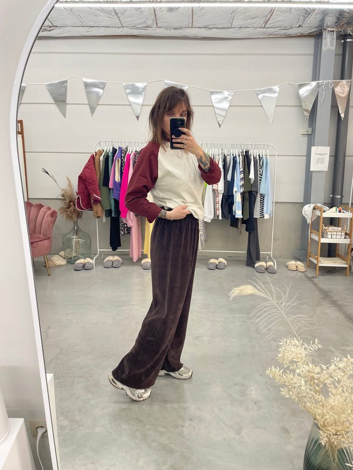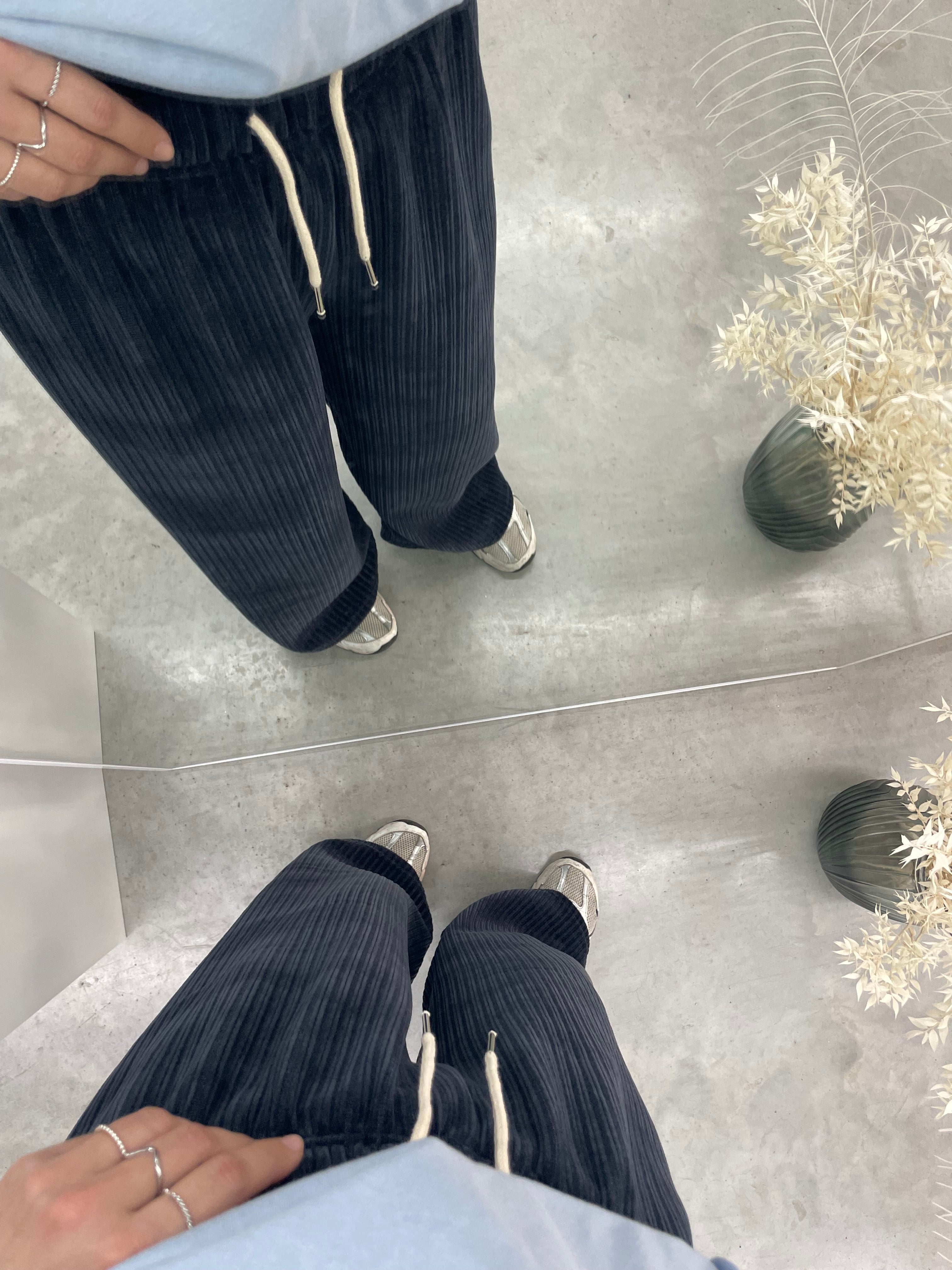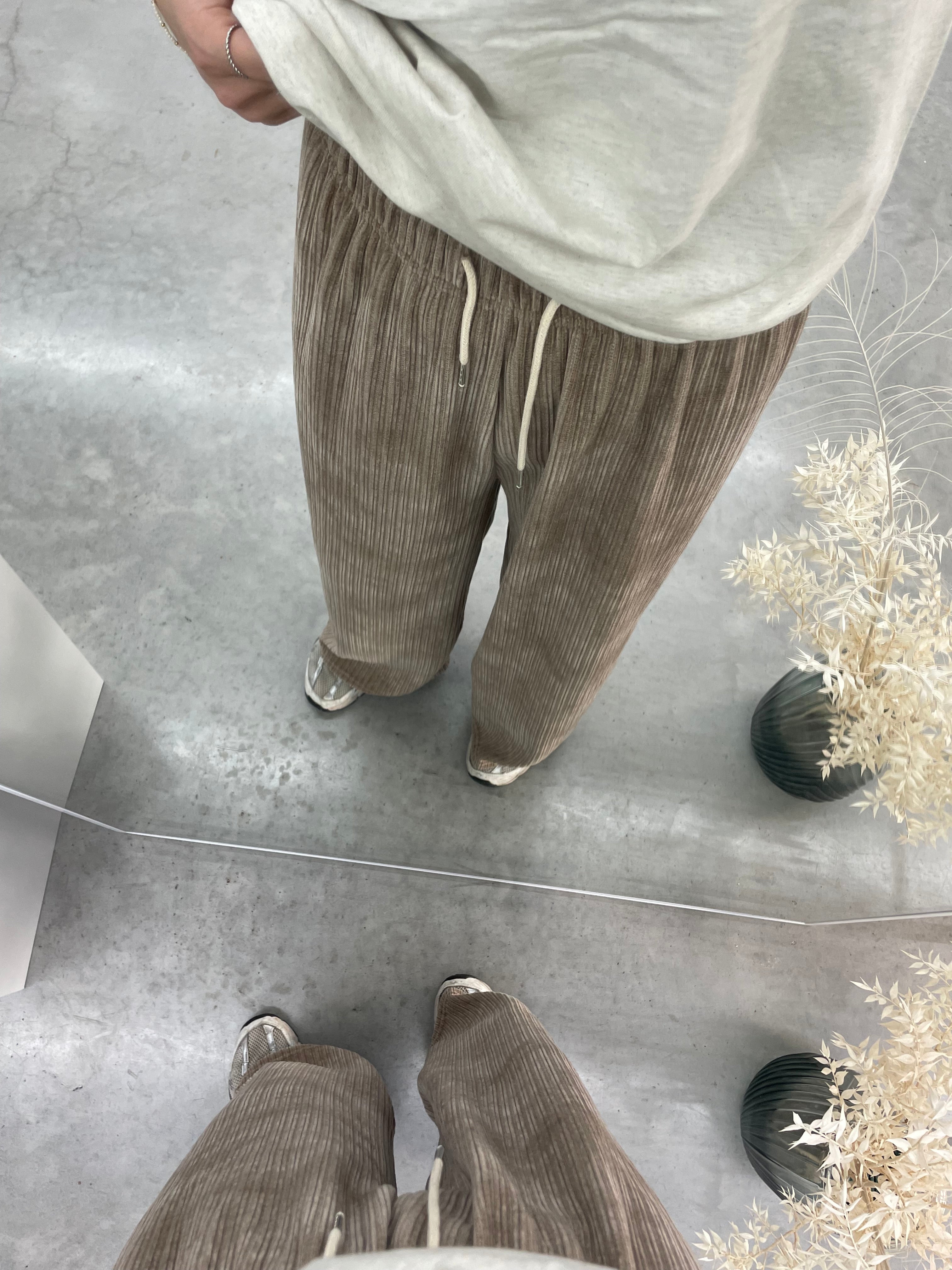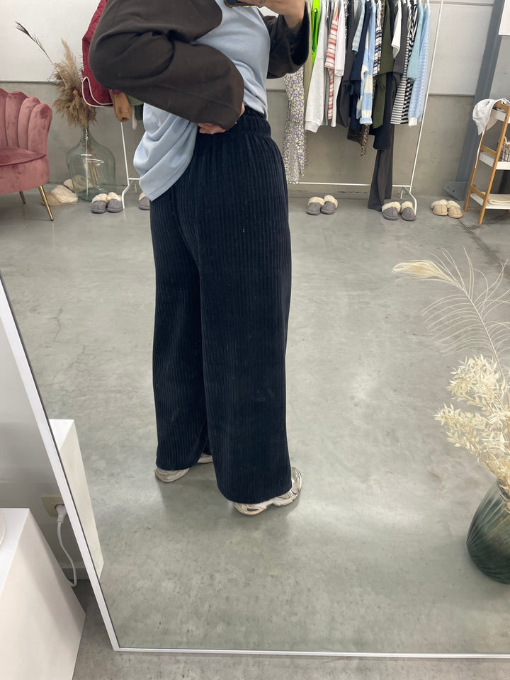 Een superzachte broek that fits all! Geen rits of knopen, wel een elastisch middel en aantrekbaar met touwtjes. Heerlijk wijde fit. One size (past van 34 tot 44)