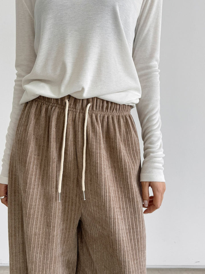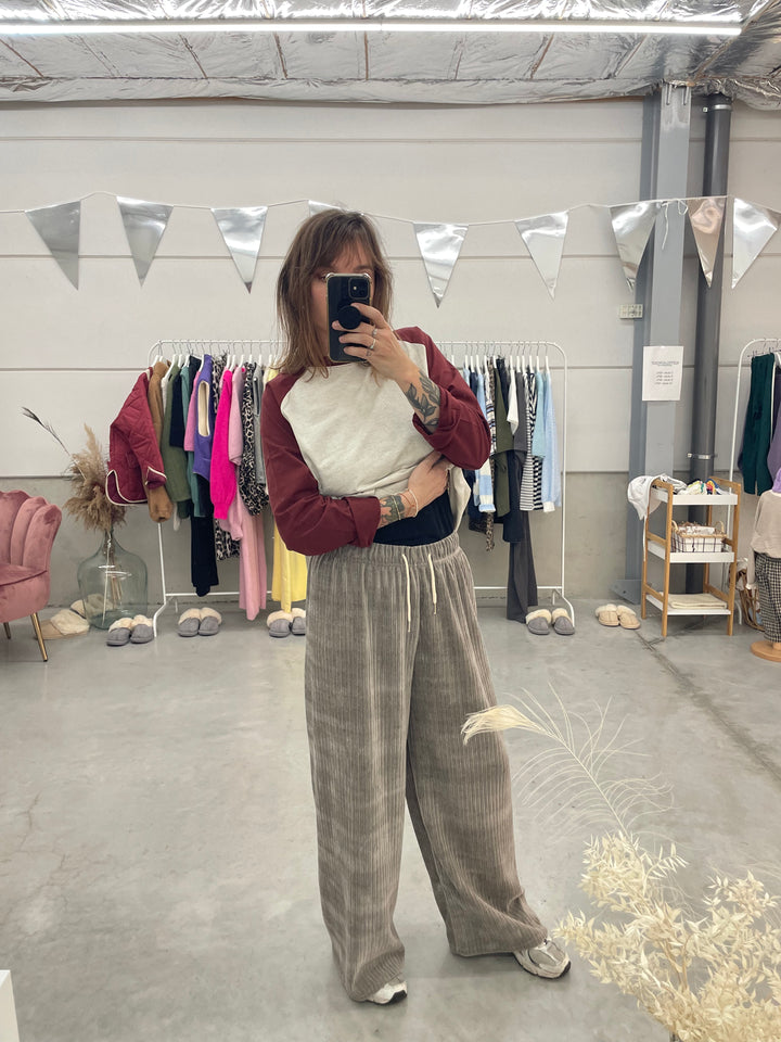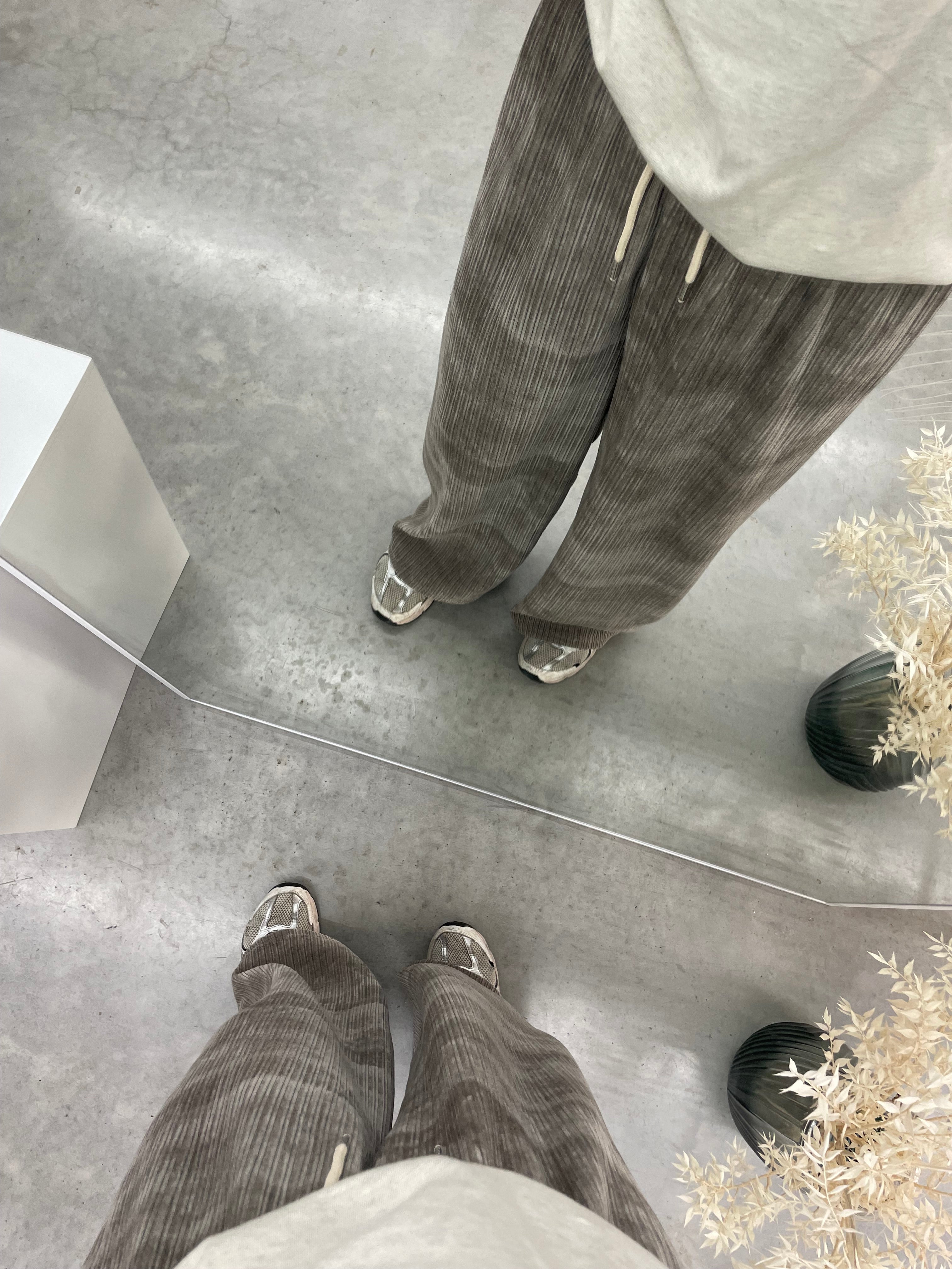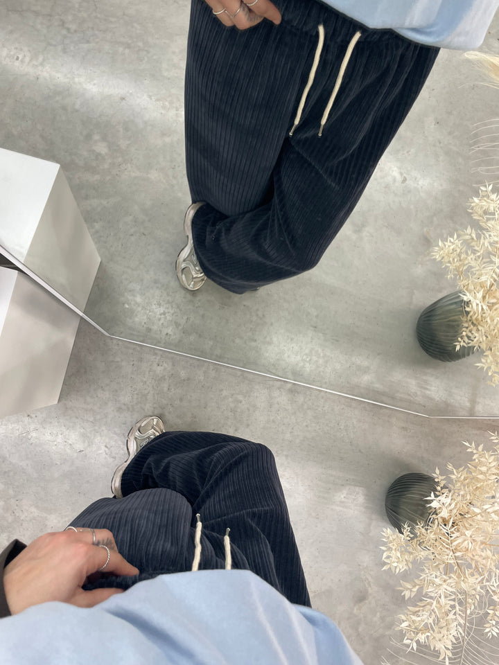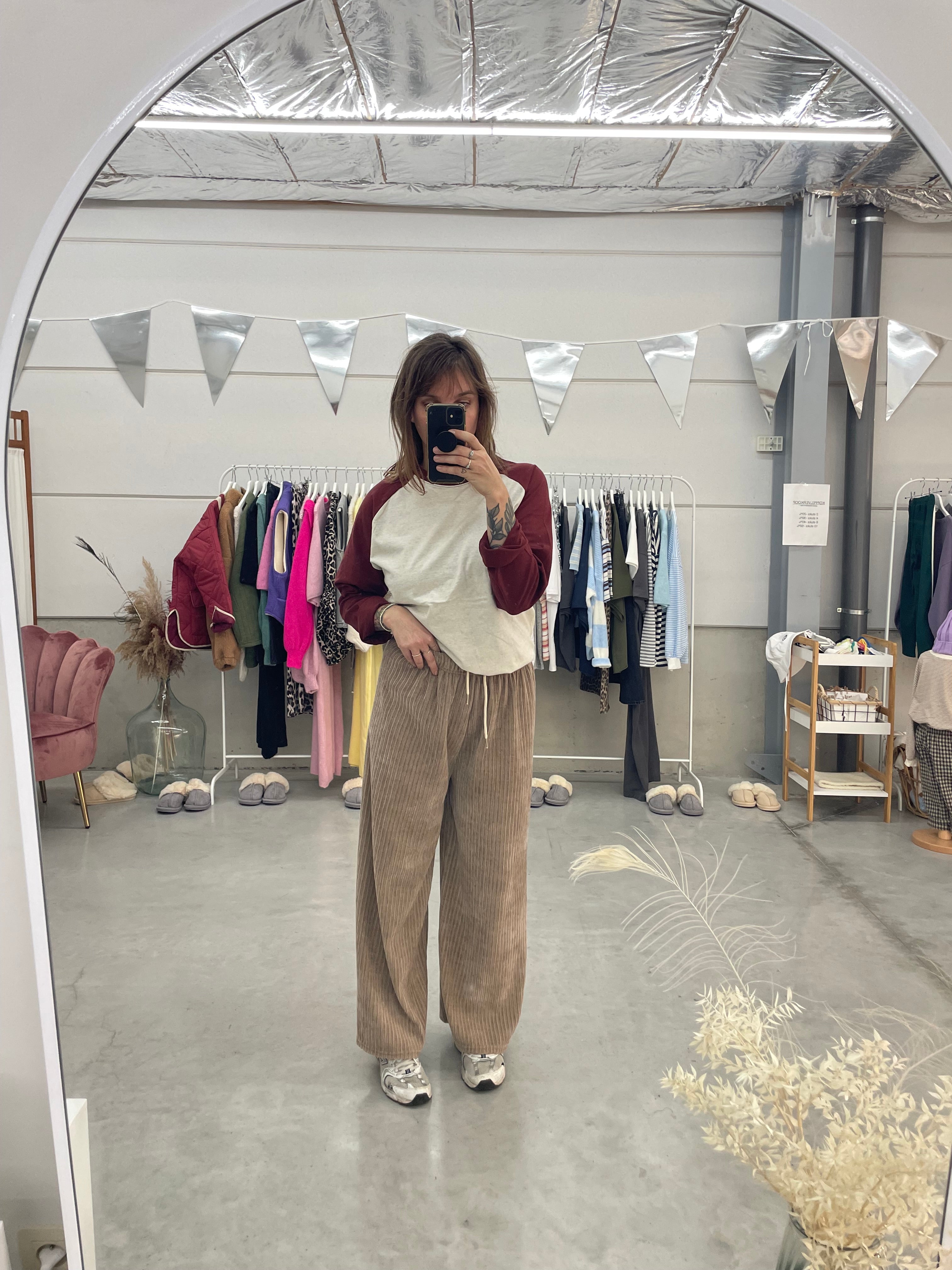 Een superzachte broek that fits all! Geen rits of knopen, wel een elastisch middel en aantrekbaar met touwtjes. Heerlijk wijde fit. One size (past van 34 tot 44)