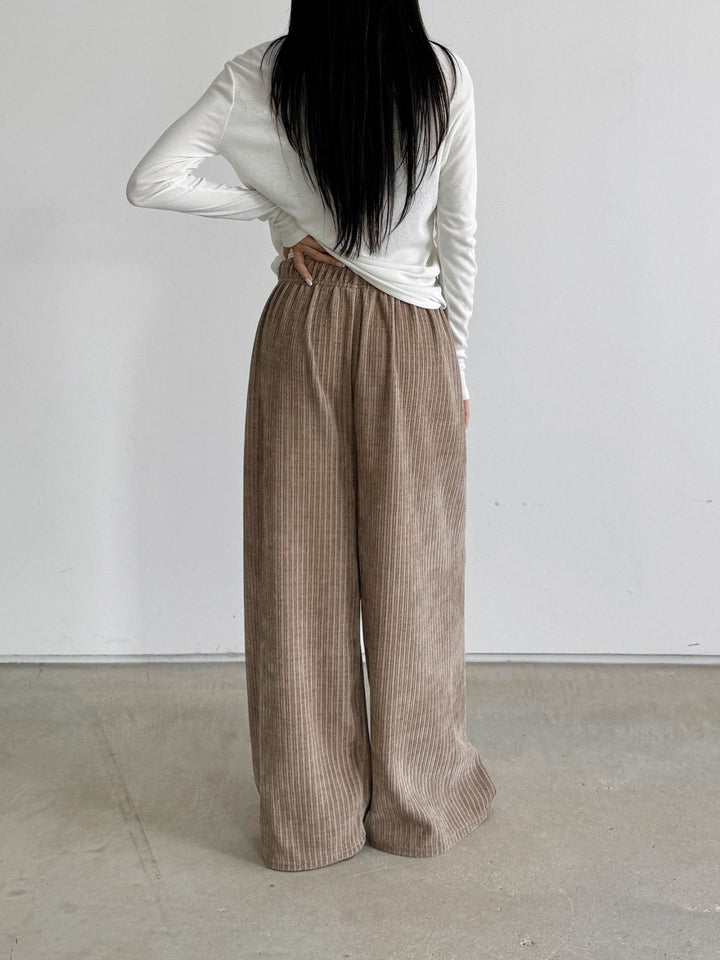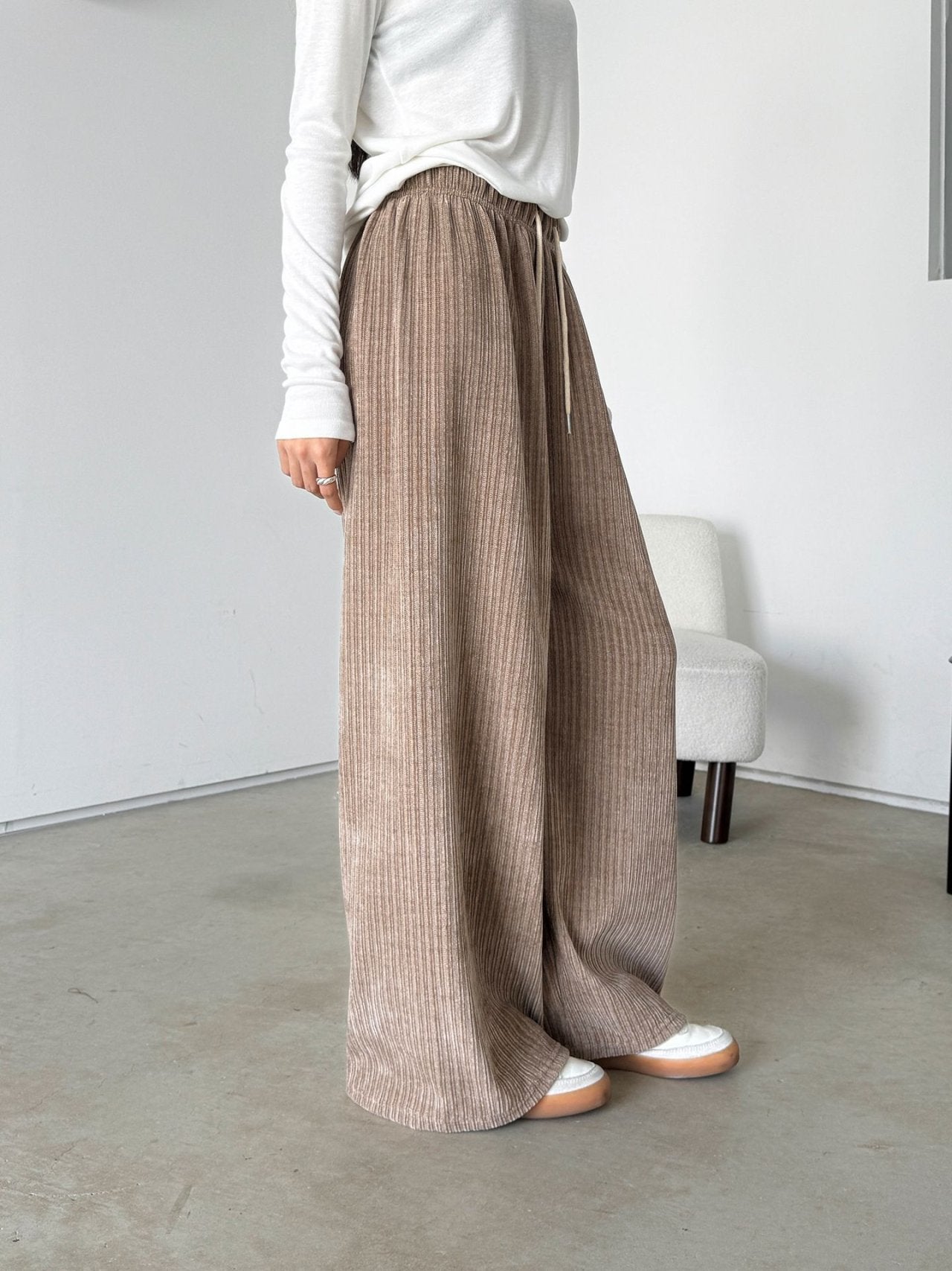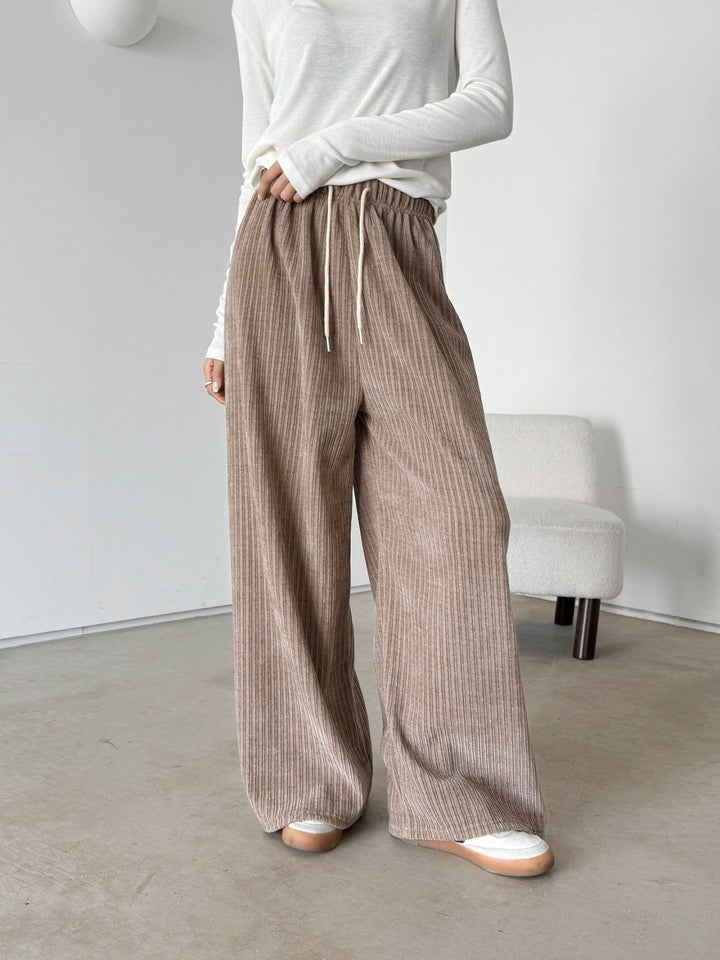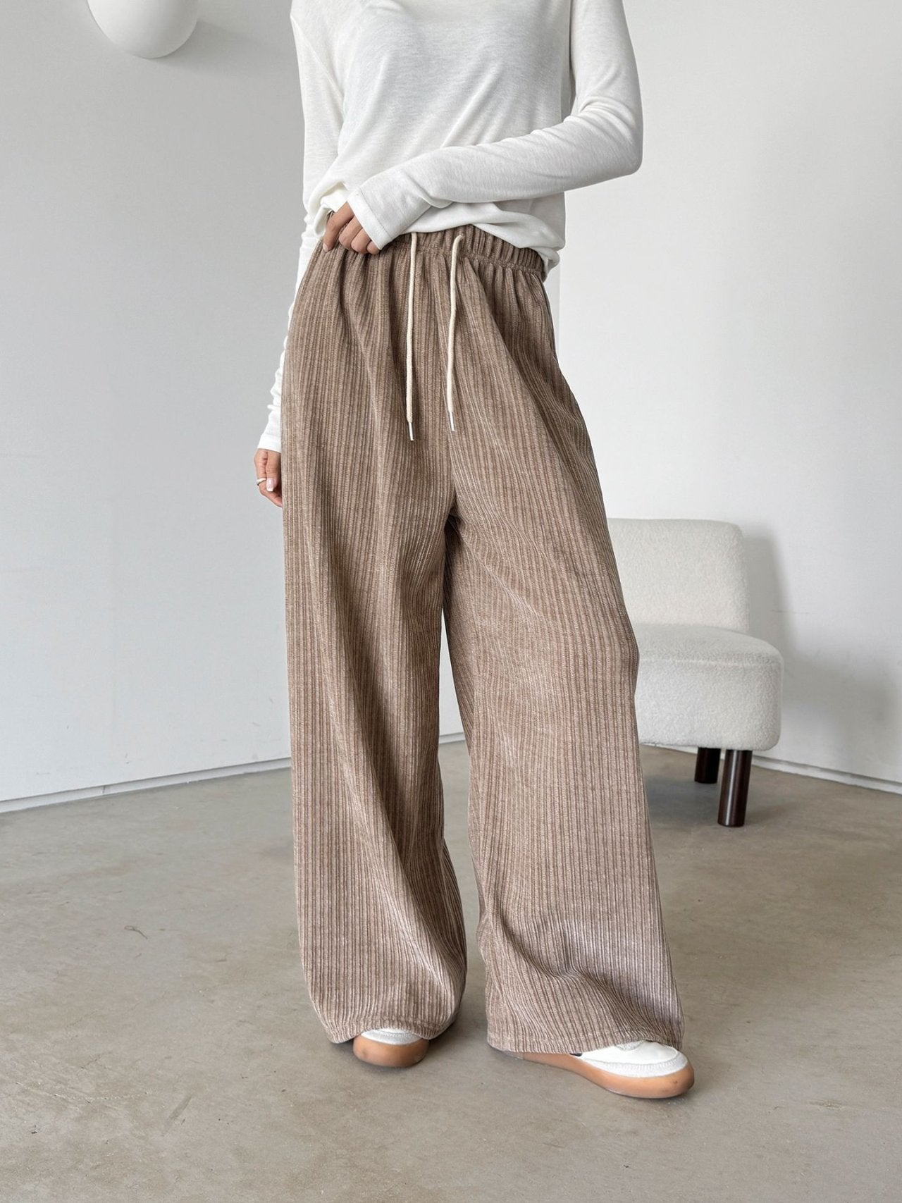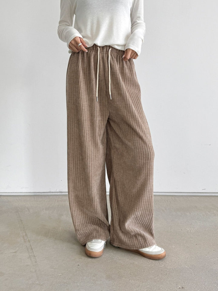 Een superzachte broek that fits all! Geen rits of knopen, wel een elastisch middel en aantrekbaar met touwtjes. Heerlijk wijde fit. One size (past van 34 tot 44)