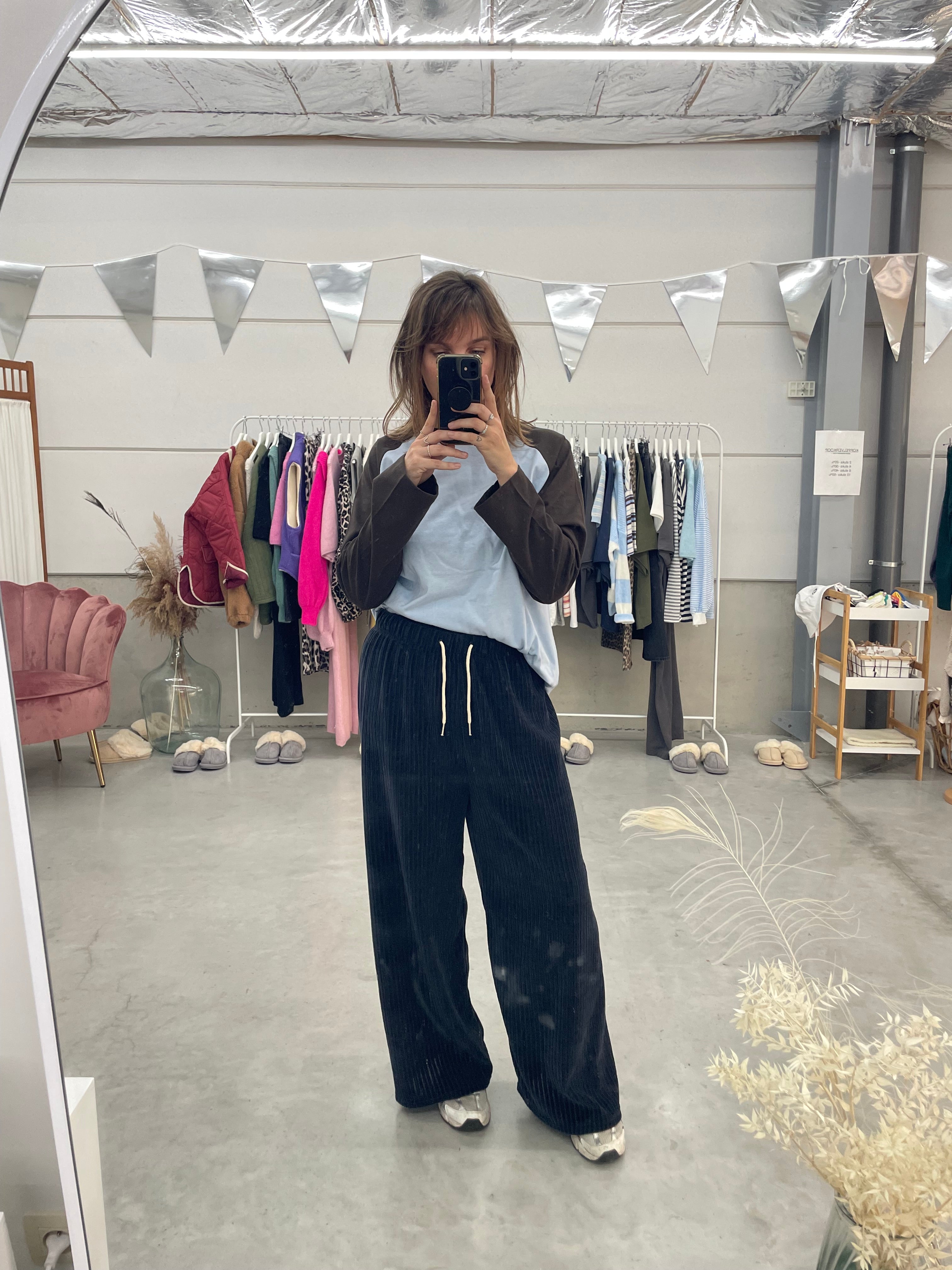 Goed om te weten: Wouke is 1m66 en draagt de broek in donkerbruine en navy kleur. De broek is 101,5 cm lang