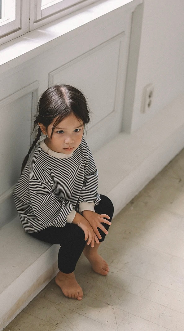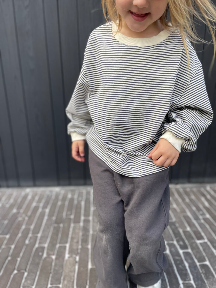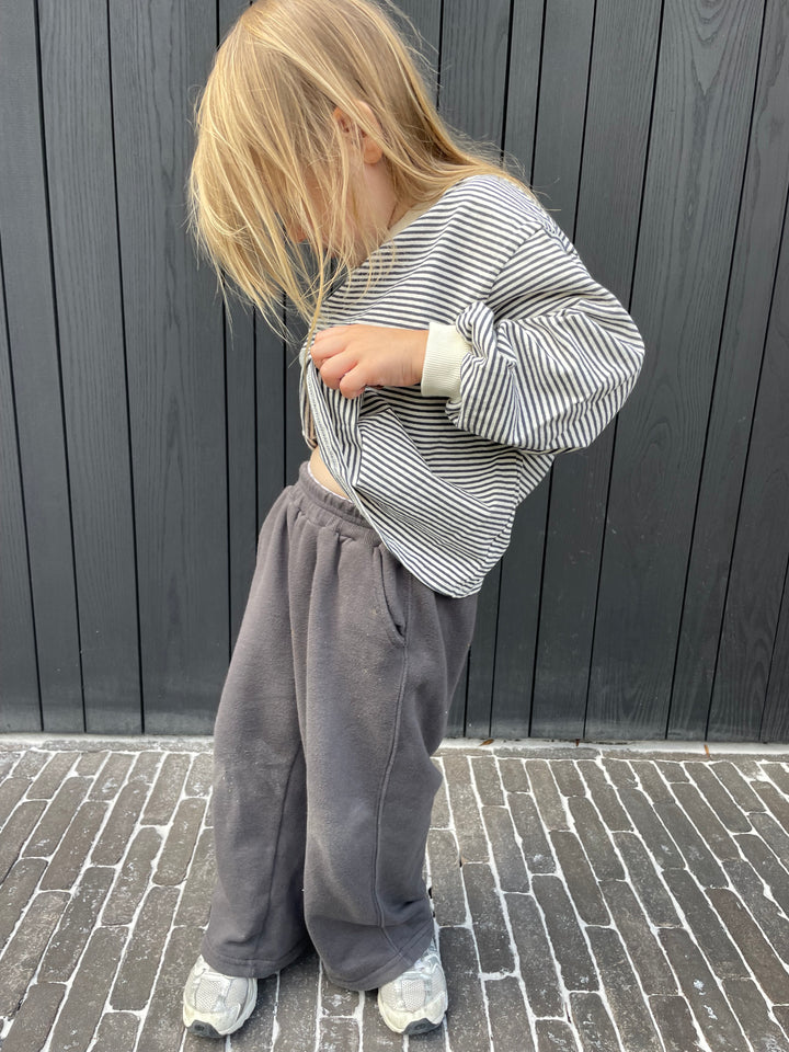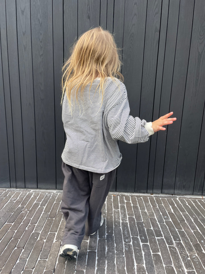 Goed om te weten: stick to your size. Lucie is op de foto bijna 4 jaar en draagt maat S in de houtskoolkleur