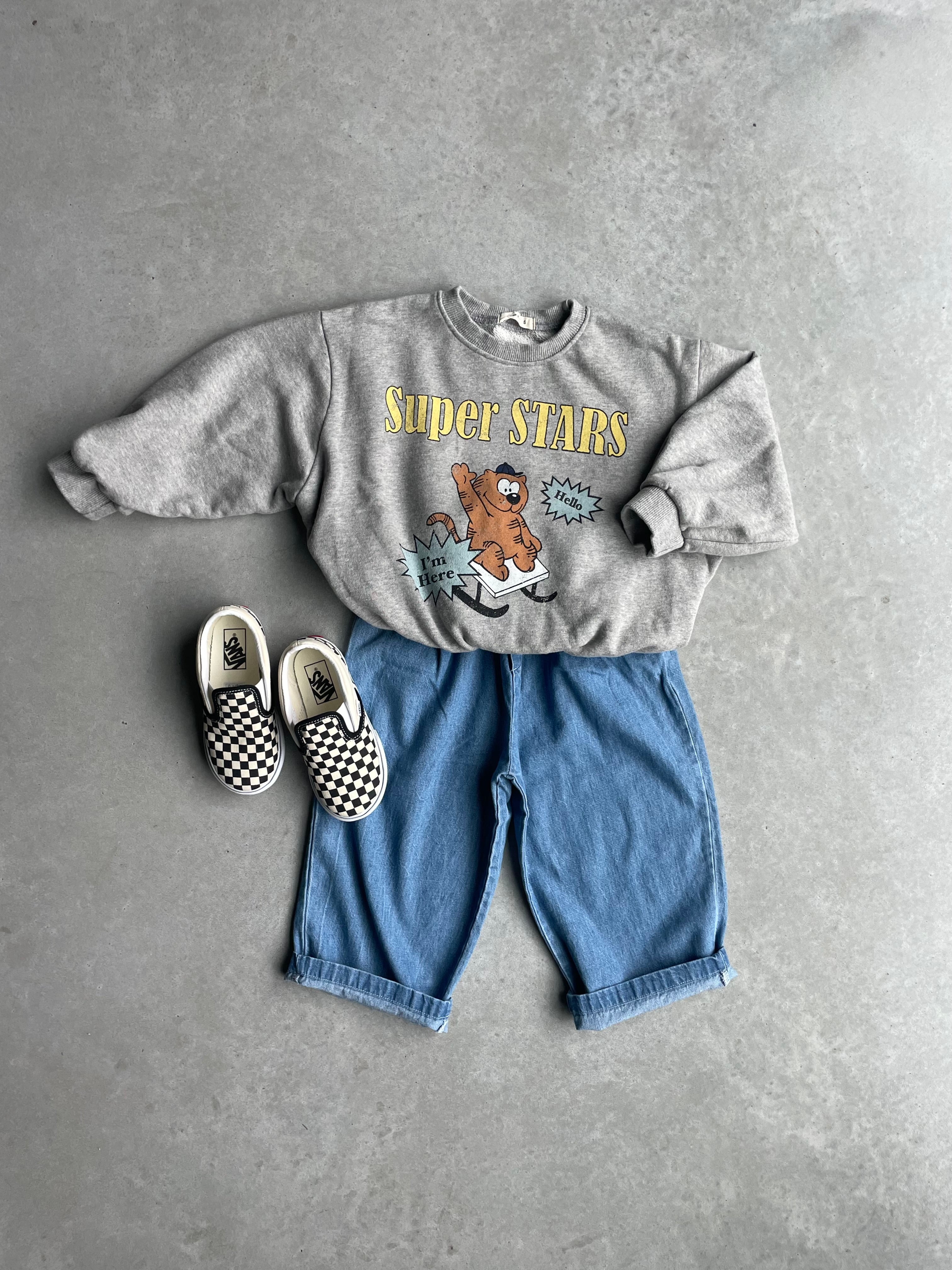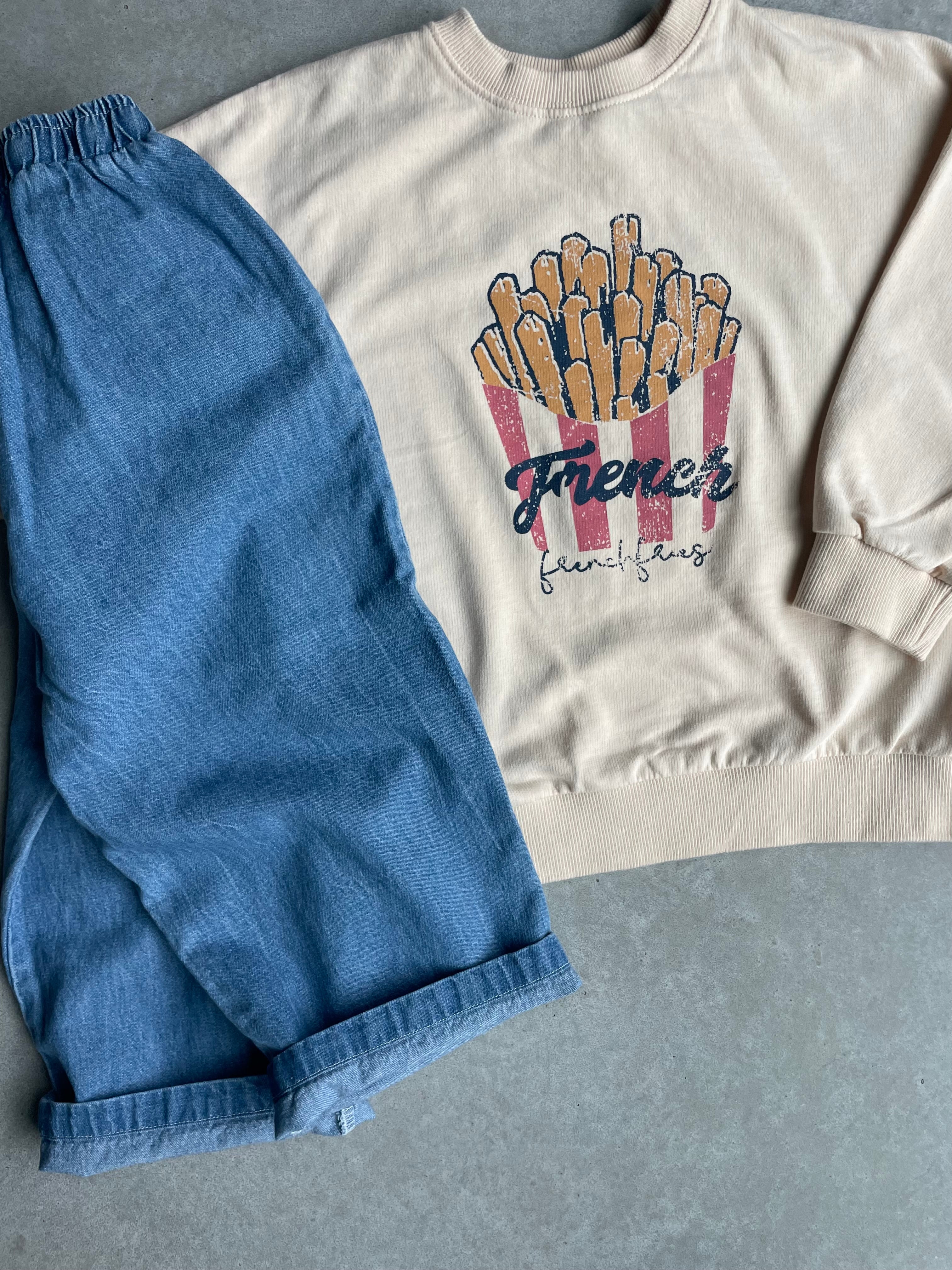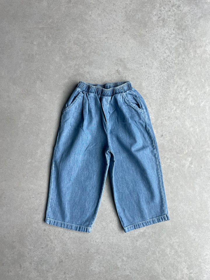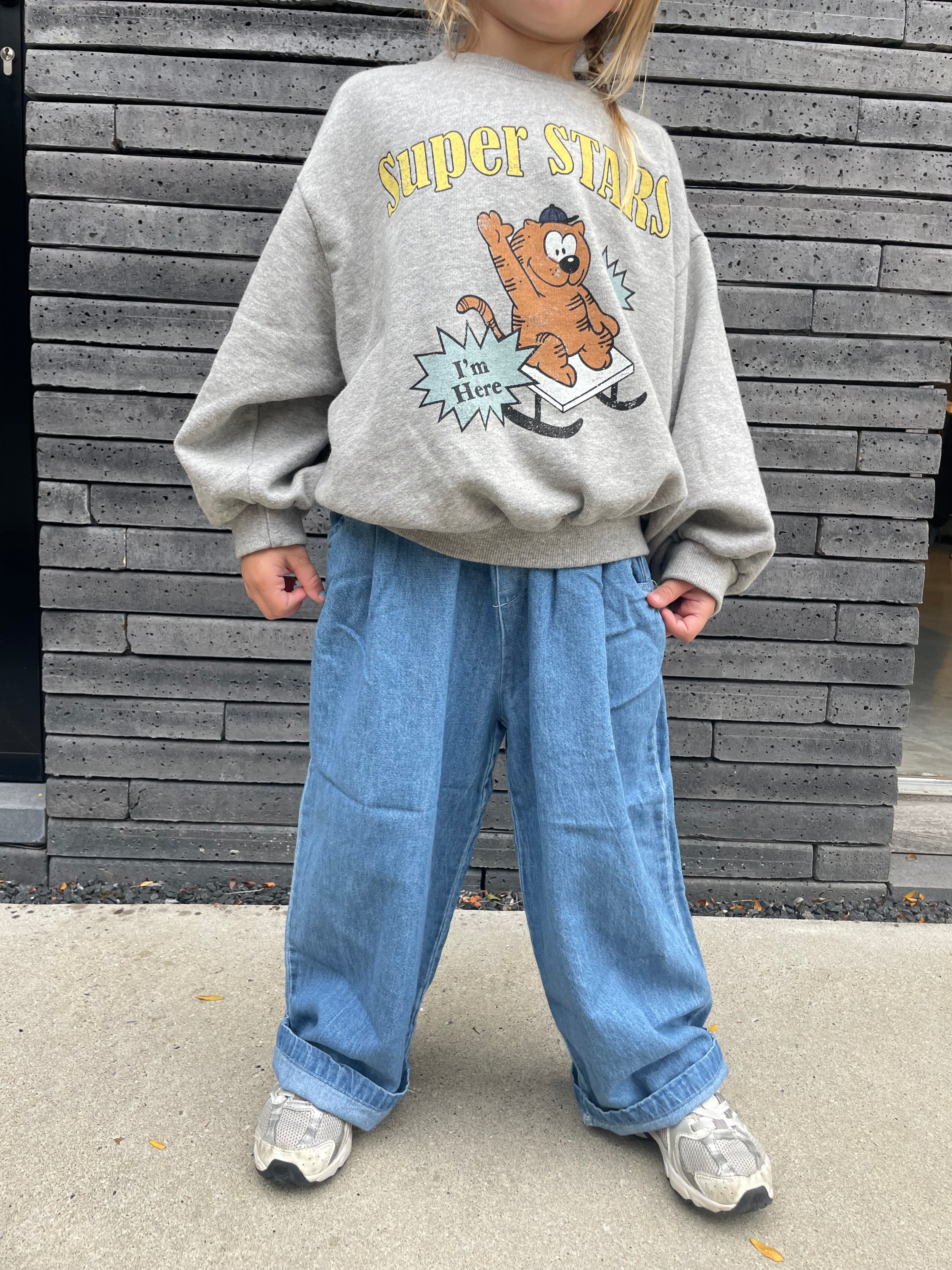 Lichtblauwe jeansbroek met coole, losse fit. Geen gedoe met ritsen en knopen, gewoon een handige rekbare taille. Dunne jeans, ideaal voor het hele jaar door!