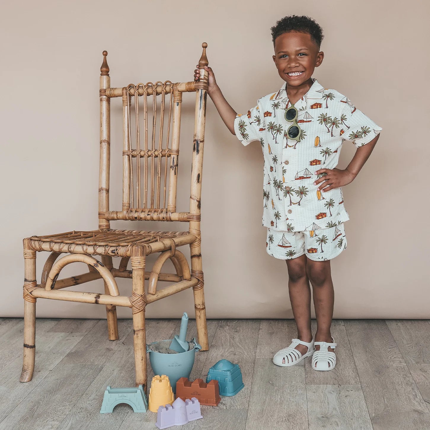 Zooo verliefd op deze set! Apart te verkrijgen maar als zomeroutfit zo'n topper! Helemaal into summer met de all-over print met palmbomen, surfplanken, zeilbootjes en strandhuisjes. De katoenen stof heeft een subtiele wafelstructuur. De loose fit zorgt voor zalig draagcomfort. Het bijpassend shortje, om de look helemaal af en summer proof te maken, vind je hier.