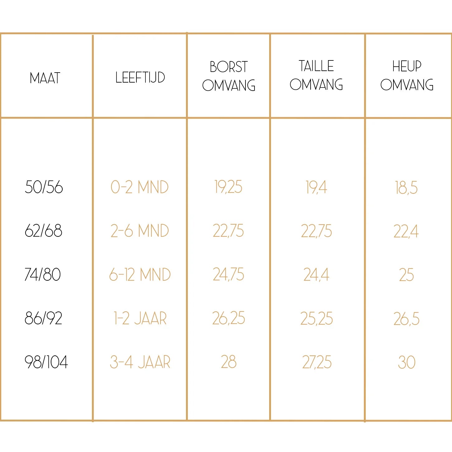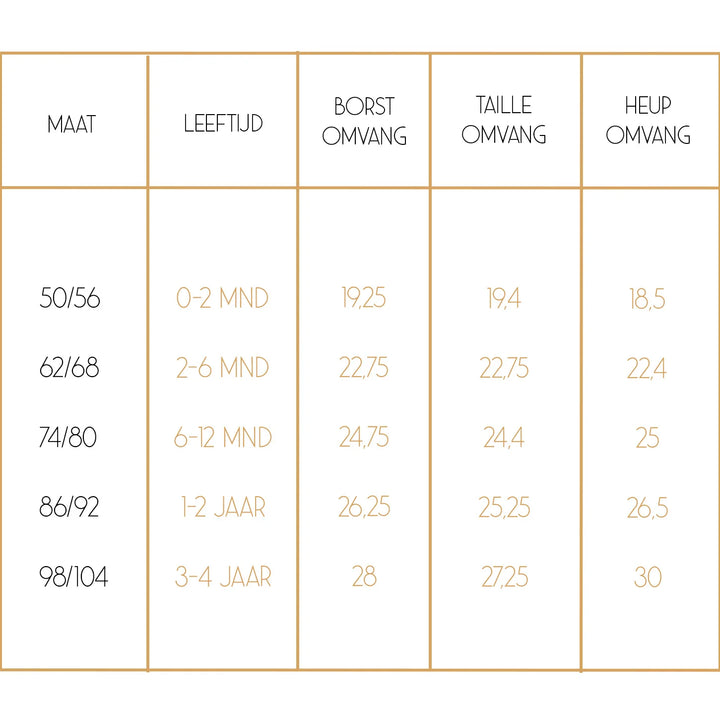 Check zeker bij twijfel de maattabel (zie foto's).